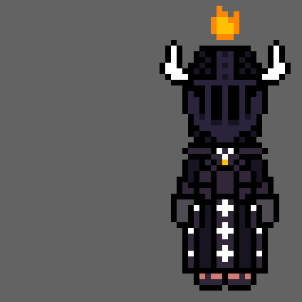 Element: Fire/HolyDess Holiday is a resident of Hometown, as well as sister to Noelle Holiday. She went missing one day, falling into the bunker in Hometown, which lead her to ending up in the Dark World. Confused and disoriented, she learned to adapt and live in it for years, eventually leading her to change her morals and don the persona of a cynical and fairly ruthless Knight, gaining a reputation as a sort of boogeyman in the Dark World, all to further a desperate goal of getting back to her family.Dess changed exponentially over the time she's been in the Dark World, over time, she's gone from someone bold, spontaneous, and protective, to someone desperate, someone reserved, but also someone who is willing to do ANYTHING to live normally again. An unrelenting, unwavering, terrifying lethal force born of the primal need to persist.In the Light World, Dess wears a long, dark purple skirt, a dark purple, sleeveless jacket, a grey tank-top, and a golden locket in the shape of a heart. She commonly cuts her antlers down, and has black, messy hair.In the Dark World, Dess dons a dark purple set of plate armor akin to that of a typical knight, which was grafted to her in an accident involving her magic, with a helmet adorned with wing-like attachments, and a small flame above the head of it. She also continues to wear her locket. She wields a mace crafted using her own antlers that she had previously cut off, bundled together into an unorthodox, but equally deadly, weapon.Stats/ItemsDARK WORLD